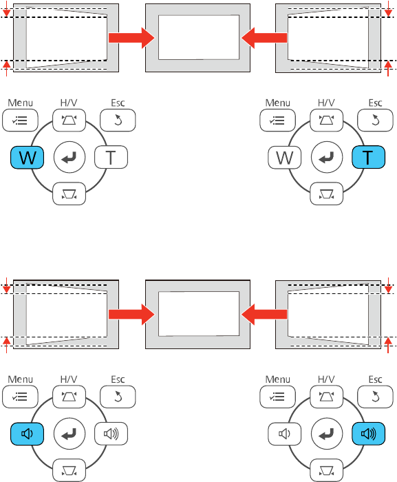 Note: The horizontal keystone adjustment buttons are labeled W and T on the EX3260/VS250.