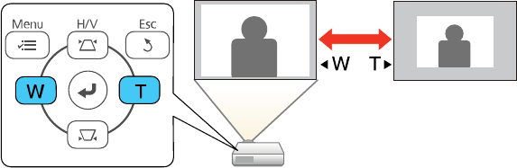 • If the projector includes W and T buttons, press the W button on the projector's control panel to