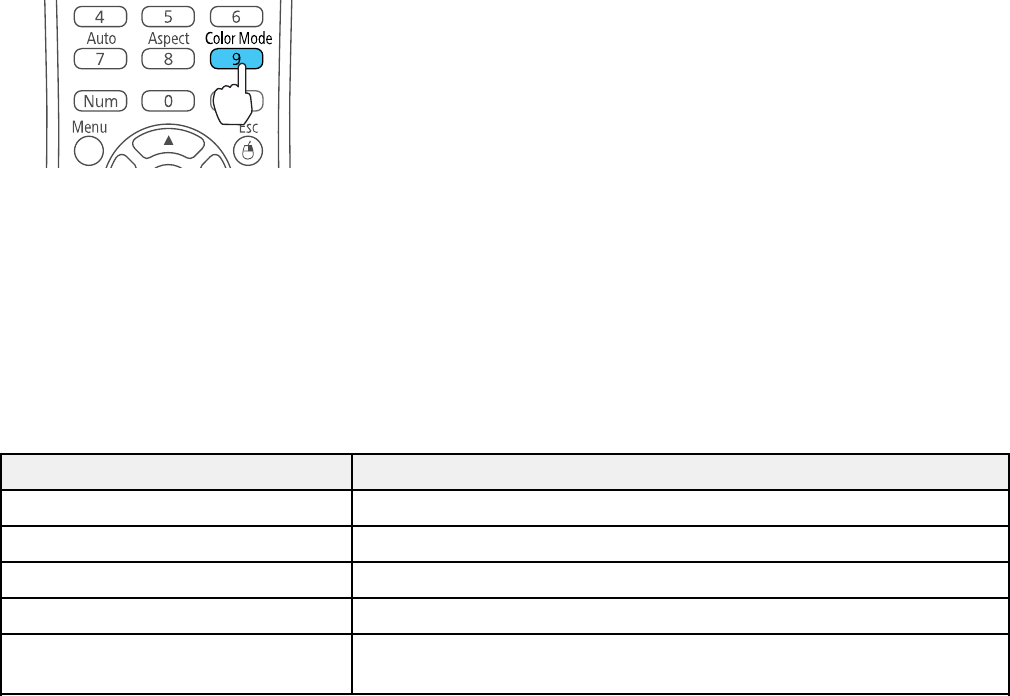 3. Press the Color Mode button on the remote control to change the Color Mode.