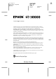 L R4C3820 Rev. C A5 size 4/9/01 COVER.FM Pass 0 Proof Sign-off: KOW S.Koide C.Fujiwara J.Miyakoshi NOC Lee Where to Find Information Setup Guide (this document) Describes how to set up and use the scanner. Basic scanning operations are covered. It also explains how to install and configure the EPSON scanner software and the Automatic Document Feeder, and includes information on how to calibrate your system.