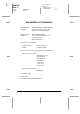 L PapU-U Rev. C A5 size 2/1/00 Proof Sign-off: E.Omori FRONT.FM Pass 0 _______ _______ _______ Declaration of Conformity Manufacturer: Address: SEIKO EPSON CORPORATION 3-5, Owa 3-chome, Suwa-shi, Nagano-ken 392-8502 Japan Representative: Address: EPSON EUROPE B.V. Prof. J. H.