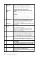settings, see the Reference Guide. The following table shows the options