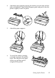 Labels To print on labels, you must use continuous paper loaded on the pull tractor. Keep the following tips in mind: ❏ Set the paper thickness lever to the correct position for labels. (See page 29.) ❏ Choose labels mounted on a continuous backing sheet with sprocket holes designed for tractor use. Do not print labels as single sheets, because the shiny backing causes the paper to slip slightly. ❏ Load labels the same way you load ordinary continuous paper. See page 20 for loading instructions.