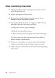Paper feeding is crooked or the paper jams. Cause What to do The paper was not fed correctly or is the wrong type. Turn off the printer and pull out the paper. Insert a new sheet straight into the paper guide. Make sure you’re using the right type of paper. See the paper specifications on page 115. Paper does not eject completely. Cause What to do The paper may be too long. Press the LF/FF button to eject the page. Use paper that is within the specified range.