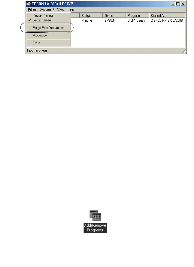 Uninstalling the printer driver and EPSON Status