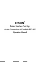 Chapter 1 Installation and Operation After you have set up your printer and loaded the paper (following the directions in the Setup Instructions), you are ready to plug in your Printer Interface Cartridge (PIC™) and begin printing. Inserting the Printer Interface Cartridge Inserting the PIC is easy. Simply follow the directions on the HomeWriter- instruction card. Once the PIC is installed, you are ready to test your printer.