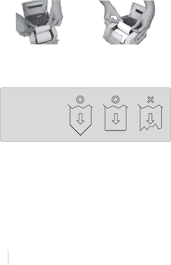 To insert the paper roll, open the back cover and the front cover according to Figures 6 and 7. Release the roll