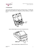 Spill-Proof Thermal Printer Owner’s Manual 1.5 Changing Paper Caution: Do not operate the printer if it runs out of paper. The printer will not operate without paper, but it may continue to accept data from the host computer. Because the printer cannot print any transactions, the data may be lost. 1. Open the top cover by pulling under the tab on both sides. 2. Remove the used roll. 3.