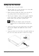 8. Turn on the scanner by pressing the end of the power switch. The green Power light on the top right side of the scanner comes on. The Ready light also flashes while the scanner warms up. 9. Turn on your monitor and all your other peripheral devices. Then turn on the computer. (Always turn on the scanner before the computer.) The scanner’s Ready light goes out when you turn on the computer and then comes on again once the computer boots.