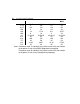 Values for s and • • are as follows: