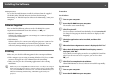 Installing the Software C Double-click the "Installer for Mac OS X" icon in the EPSON window. Installation starts. D Click "Exit" to complete the installation. q • When installation does not start automatically (Windows only) Select Start - Run, and in the Run dialog box, type the letter for your CD-ROM drive followed by :\EPsetup.exe and then click OK. • Uninstalling For Windows Select Start - Settings - Control Panel - Add-Remove Programs or Add or Remove Programs and then remove EMP NS Connection.