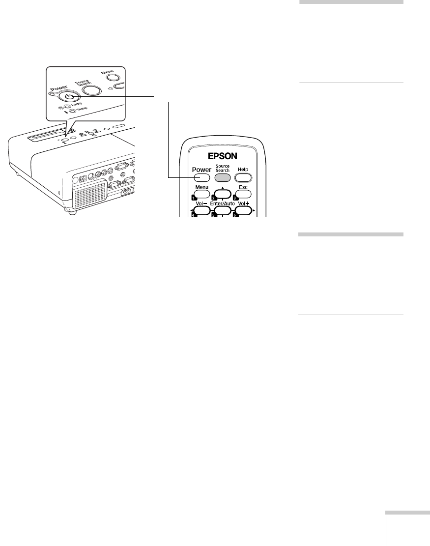 projector warms up. The projector lamp comes on in about