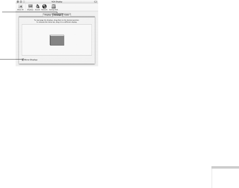 Arrangement, and make sure Mirror Displays is checked.