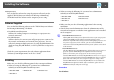 Installing the Software 8 Installing the Software You can find the software for using the projector effectively on the supplied "EPSON Projector Software for Meeting & Monitoring" CD-ROM. Install the software on the computer you are using. • When you using the following OS, you must have administrator authority to install EasyMP Monitor. • Windows 2000 • Windows NT4.
