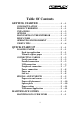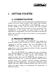 Table Of Contents GETTING STARTED . . . . . . . . . . . . . . . . . . . . .1 CONGRATULATION . . . . . . . . . . . . . . . . . . . . . .1 PRODUCT BRIEFING . . . . . . . . . . . . . . . . . . . . . 1 UNPACKING . . . . . . . . . . . . . . . . . . . . . . . . . . . . . 1 OPTIONS . . . . . . . . . . . . . . . . . . . . . . . . . . . . . . . . 1 MAIN PARTS ON THE EXTERIOR . . . . . . . . . 1 INDICATORS . . . . . . . . . . . . . . . . . . . . . . . . . . . . 1 OPERATING ENVIRONMENT . . . . . . . . . . . . .