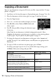 ■ 2-up Copy copies two photos on one sheet. (Follow the on-screen instructions.) ■ Repeat Copy copies as many photos at actual size as will fit on your paper. ■ Repeat-4 copies four photos on one page at whatever size fits. Note: CD/DVD Copy copies label designs only onto ink jet-printable CDs or DVDs. See your on-screen User’s Guide for instructions. 9. To change your paper type or any of the other copy settings, press x Menu. Select your settings and press OK.