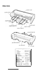 Attaching the paper support and the paper separators You should install the paper support and the paper separators before you begin using the printer. To install, follow the steps below. 1-6 1. Attach the paper support. Grasp the paper support and place the right end notch over the mounting post of the printer. Then, push the left notch onto the left mounting post. 2. Attach the paper separators. Hold the first paper separator upright and push the tips into the notches. Then lower the paper separator.