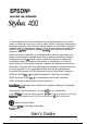 Energy Star Compliant Your EPSON Stylus’” 400 printer complies with the U.S. Environmental Protection Agency’s Energy Star program, which promotes the manufacture of energy-efficient printers, computers, and monitors. The EPA estimates that if all desktop computers, printers, and other peripheral devices met Energy Star standards, energy cost savings would exceed $1 billion annually and carbon dioxide emissions would be reduced by 20 million tons.