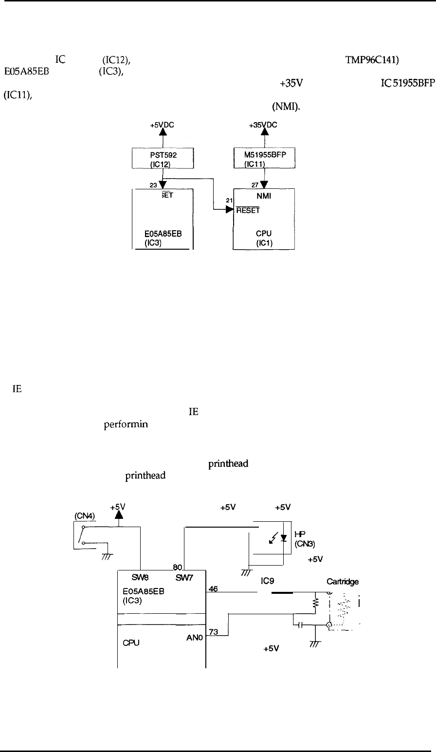 (IC1l), and outputs a reset signal to the CPU. The reset signal is generated when the voltage level