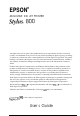 EPSON ® 48-NOZZLE INK JET PRINTER All rights reserved. No part of this publication may be reproduced, stored in a retrieval system, or transmitted in any form or by any means, mechanical, photocopying, recording, or otherwise, without the prior written permission of Seiko Epson Corporation. No patent liability is assumed with respect to the use of the information contained herein. Neither is any liability assumed for damages resulting from the use of the information contained herein.