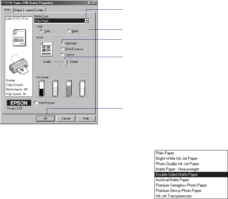 paper you’re using. The printer automatically adjusts other settings to optimize