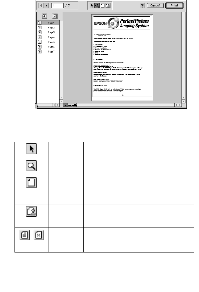 The Preview dialog box contains six icon buttons you can use to