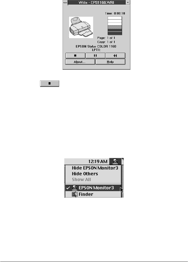 Stop button to cancel printing.