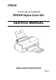 PREFACE This manual describes functions, theory of electrical and mechanical operations, maintenance, and repair of EPSON Stylus Color 600. The instructions and procedures included herein are intended for the experience repair technician, and attention should be given to die precautions on the preceding page. The Chapters are organized as follows: CHAPTER 1. GENERAL DESCRIPTION Provides a general product overview, lists specifications, and illustrates the main components of the printer. CHAPTER 2.