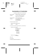 L R4C260 short.bk Rev_C A5 size 12/15/99 FRONT.FM Pass 2 Proof Sign-off: M.Hida, CRE Tsukada_______ N. Nomoto _______ _______ Declaration of Conformity According to ISO/IEC Guide 22 and EN 45014 Manufacturer: Address: SEIKO EPSON CORPORATION 3-5, Owa 3-chome, Suwa-shi, Nagano-ken 392-8502 Japan Representative: Address: EPSON EUROPE B.V. Prof. J. H.