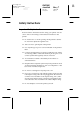 Proof Sign-off: M.Hida, CRE Tsukada_______ N. Nomoto _______ _______ R4C260 short.bk Rev_C A5 size 12/15/99 SAFE.FM Pass 3 R Safety Instructions Important Safety Instructions Read all of these instructions before using your printer. Also be sure to follow all warnings and instructions marked on the printer. ❏ Do not block or cover the openings in the printer’s cabinet. Do not insert objects through the slots. ❏ Take care not to spill liquid on the printer.