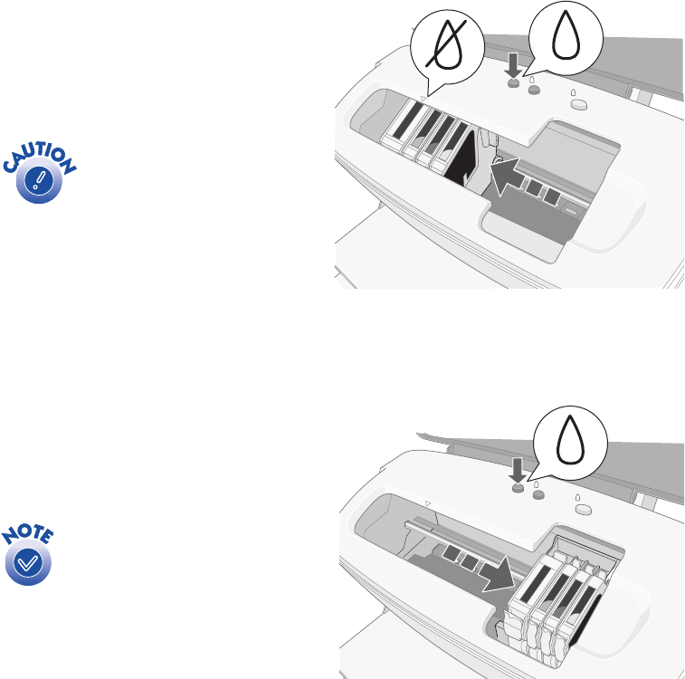 If more than one ink cartridge is empty, the next cartridge moves under the