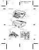 L Verde+ Reference Guide A5 size 10-25-95 Chapter 3 DR, pass 2-Rev1 c Caution: Use only genuine EPSON cartridges and do not refill them. Other products may cause damage not covered by EPSON’s warranty. Leave the old cartridge installed in the printer until you are ready to replace it with a new one. Attempting to print without a cartridge installed can damage the printer. Once you install the ink cartridges, do not open the clamps or remove the cartridges except to replace them with new ones.