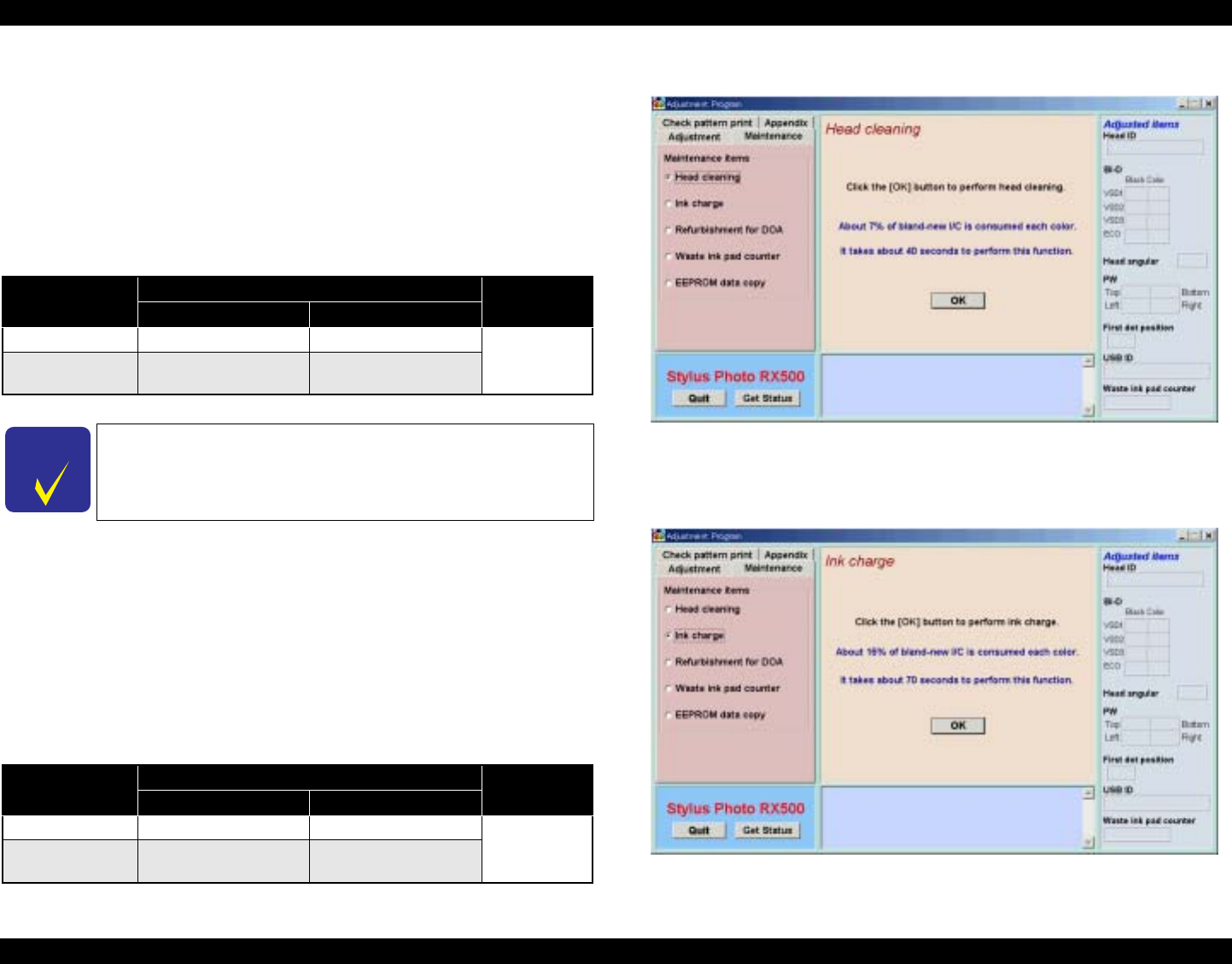 When the Head or Printer Mechanism has been replaced, ink is not available in the ink
