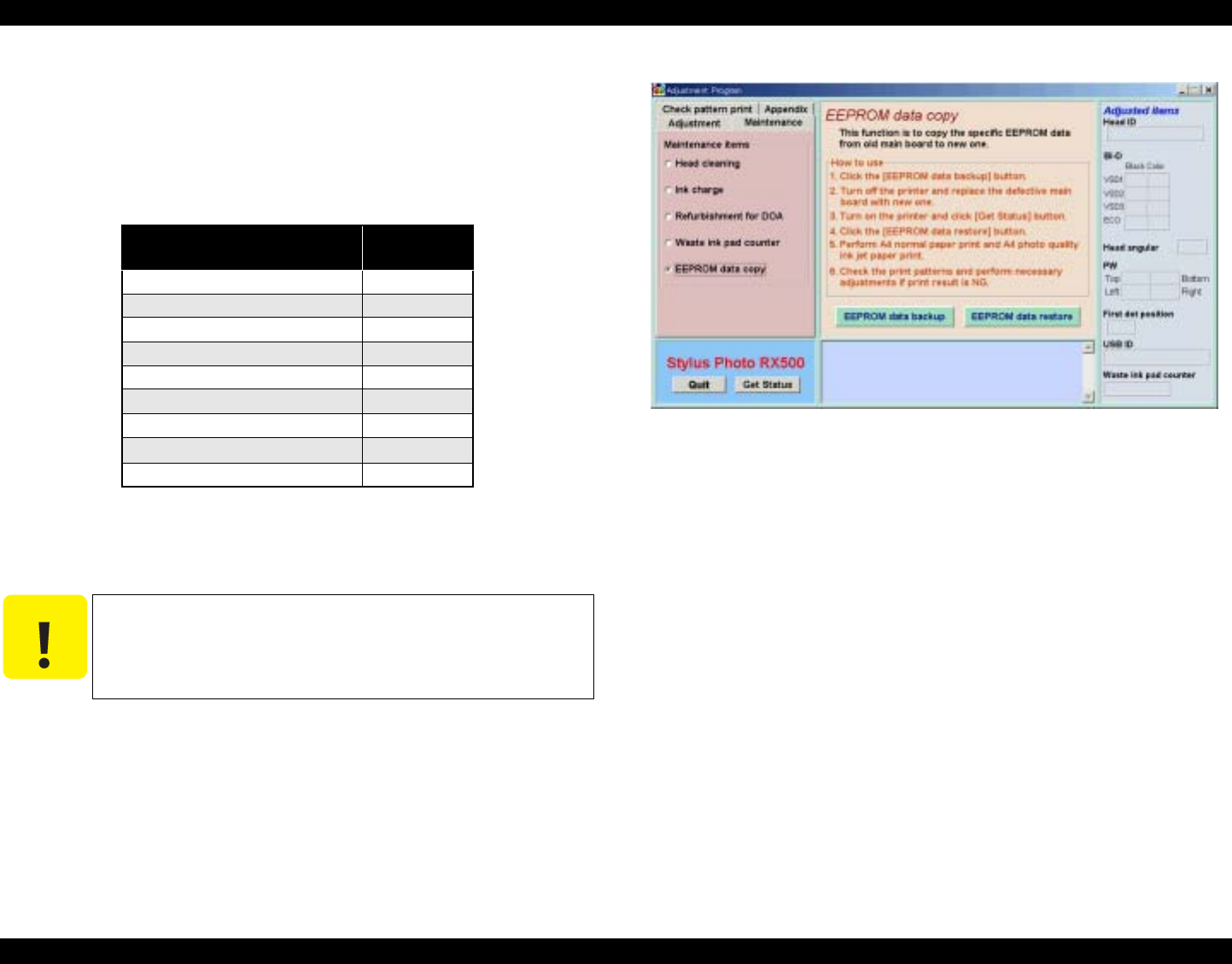 that have been stored in EEPROM on the Main Board. Use of this function will reduce
