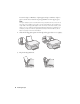 10. Close the scanner. 11. Press the B ink button. The Epson Stylus CX begins charging ink and the P On light starts flashing. This takes about one minute. When it’s finished, the P On light stops flashing and remains on, and the B ink light goes out. Caution: Never turn off the Epson Stylus CX while the P On light is flashing or you’ll waste ink. Note: If the B ink light stays on (not flashing), the ink cartridge may not be installed correctly.