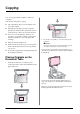 Copying You can copy documents and photos without a computer. Note the following when copying: ■ The copied image may not be exactly the same size as the original. ■ Depending on the type of paper used, print quality may decline in the top and bottom areas of the printout, or these areas may be smeared. ■ If you see a low ink indicator while you are copying, you can either continue copying until the ink is expended, or stop and replace the cartridge. ■ Keep the document table clean.