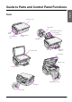 English Guide to Parts and Control Panel Functions Parts document cover sheet feeder paper support extension control panel memory card slot cover paper support feeder guard external interface USB port edge guide output tray document table output tray extension scanner unit cartridge cover memory card slots paper thickness lever USB port AC inlet Guide to Parts and Control Panel Functions 5