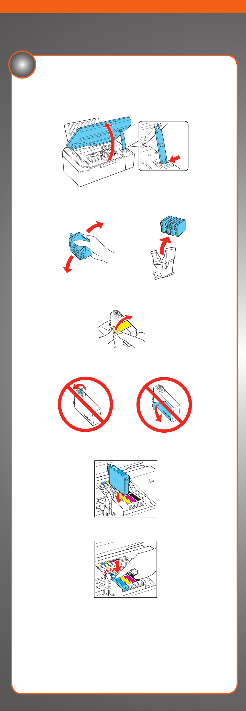 Caution: Do not open the ink cartridge package until you are ready to install the ink.