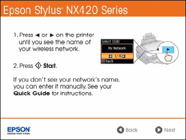 2. When you see this screen, use the printer’s buttons to select the name of your