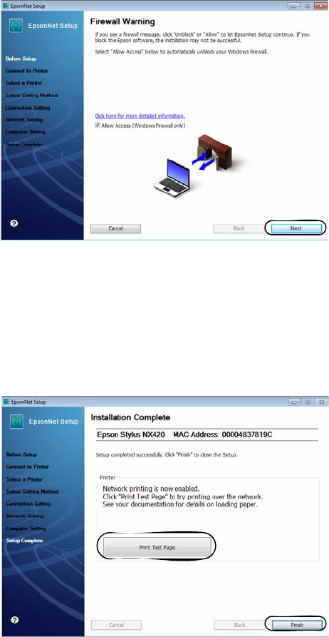 If you see a firewall alert message, click Unblock or Allow to let EpsonNet Setup