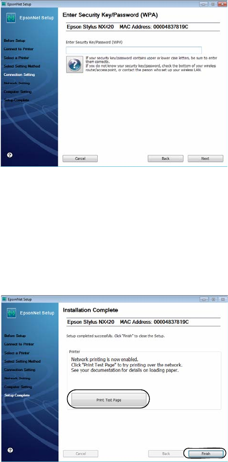 7. Wait while EpsonNet Setup configures your printer for the network.