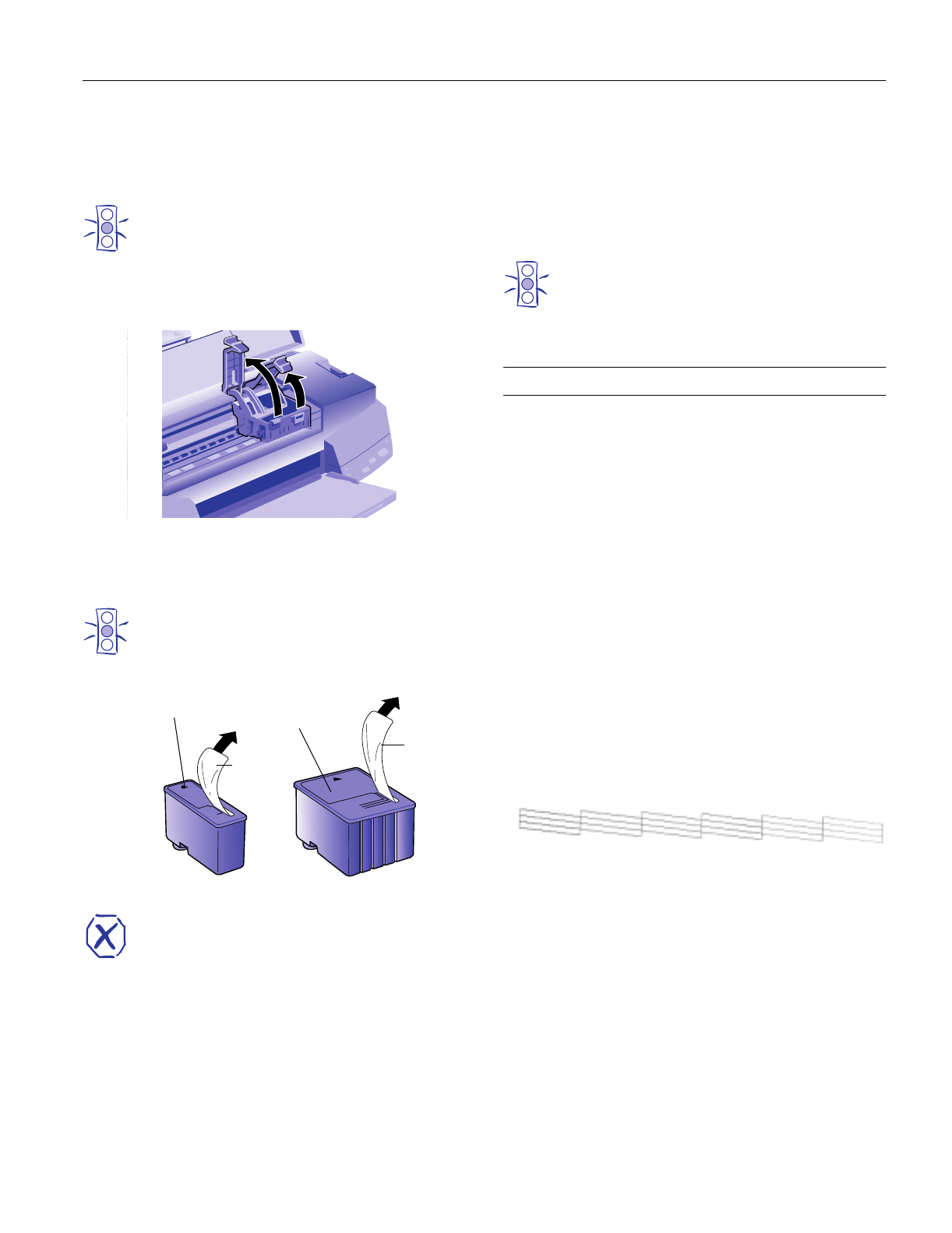 5. Pull up the two ink cartridge clamps. (The illustration