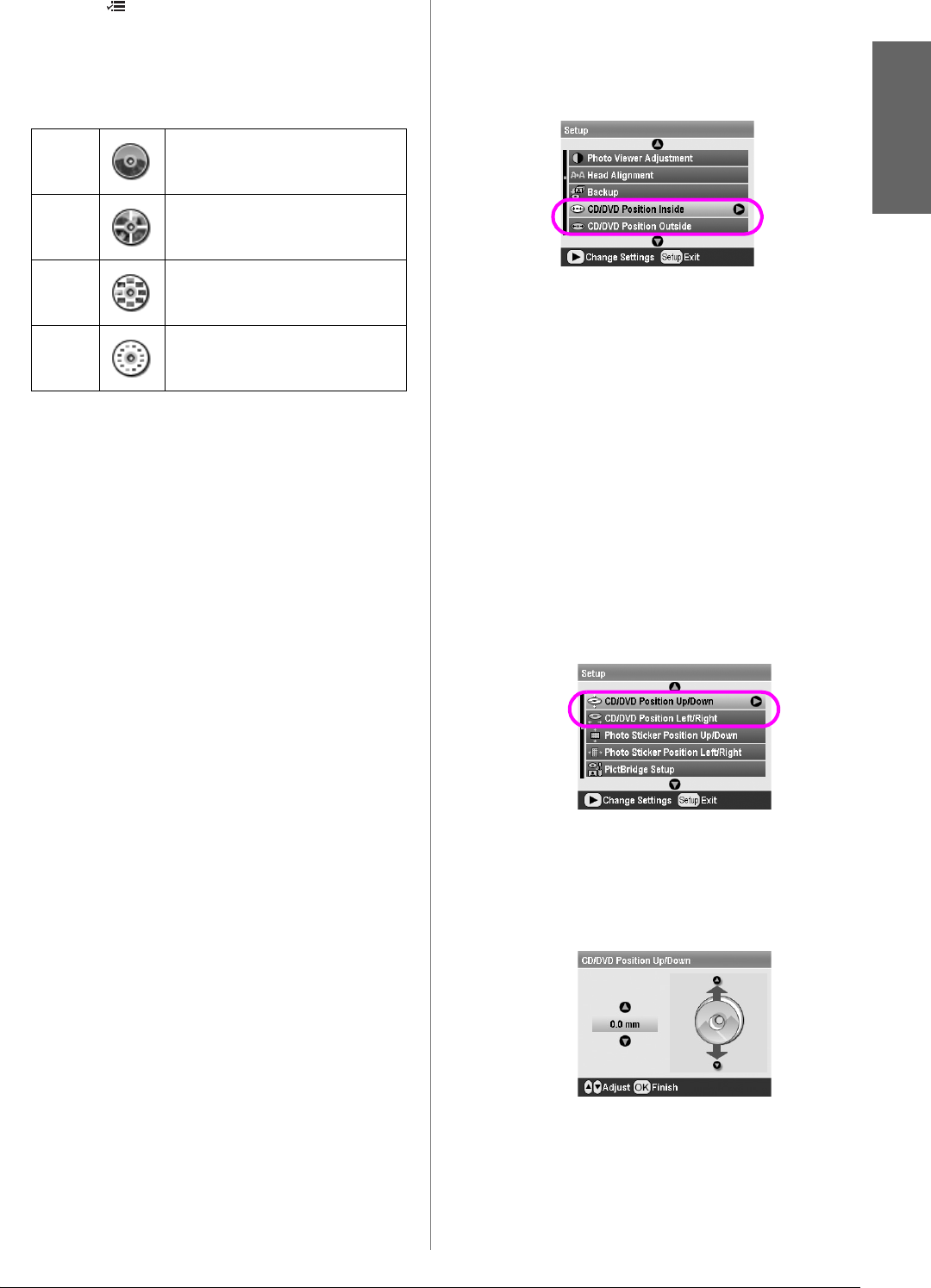 2. To move the image up or down, select CD/DVD