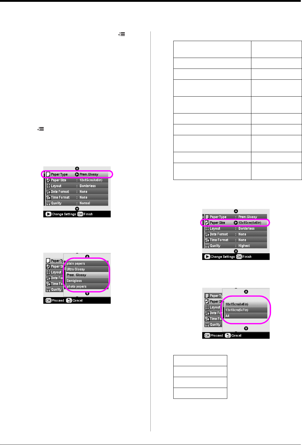 4. Press the d or u button to select Paper Size, then