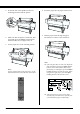 6. Holding the ink cartridge with arrow mark on the left side and pointing to the rear of the printer, and insert it into the slot. Be sure to match the colors of the seal of compartment and the cartridge you are replacing. 1. Slide the movable flange off the end of the spindle. 2. Place the roll paper on a flat surface so that it unwinds in the direction shown. Slide the roll paper onto the spindle and fully onto the fixed flange. 7. Close the ink cartridge clamp backwards.