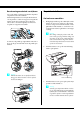 4. Neem een cartridge uit de verpakking en schud de cartridge goed. Alleen zo krijgt u het beste resultaat. 7. Breng de inkthendels omlaag wanneer u alle cartridges in hun sleuf hebt gestoken. De printer begint met het laden van de inkt. 8. Na circa twee minuten verschijnen berichten over de inkthendel op het LCD-display. Breng de inkthendels omhoog of omlaag (afhankelijk van het bericht). Wanneer GEREED op het LCD-display verschijnt, is het laden van de inkt voltooid. c 5.