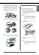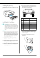 Installing the paper tray Insert the paper tray in the slots at the front of the printer. ❏ The right ink compartment of EPSON Stylus Pro 4450 cannot be opened. Do not press the cover too hard; otherwise, you may break it. 5678 1234 Installing the ink cartridges w Warning: The ink cartridges are self-contained units. Under ordinary use, ink does not leak from the cartridges. If ink does get on your hands, wash them thoroughly with soap and water.