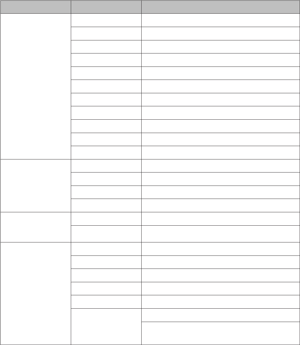 Vous pouvez configurer et exécuter les éléments et paramètres suivants dans le menu. Voir les pages de référence pour