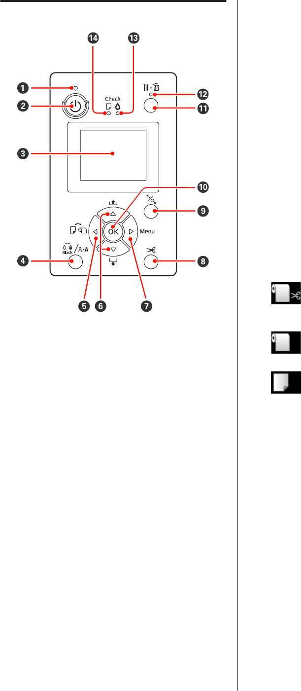 Affiche l'état de l'imprimante, les menus, les messa‐