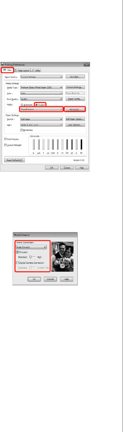 - Correction automatique des couleurs et impression de photos (PhotoEnhance)